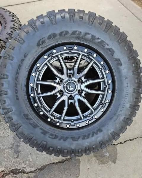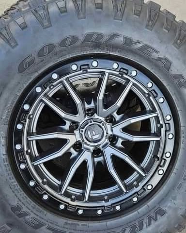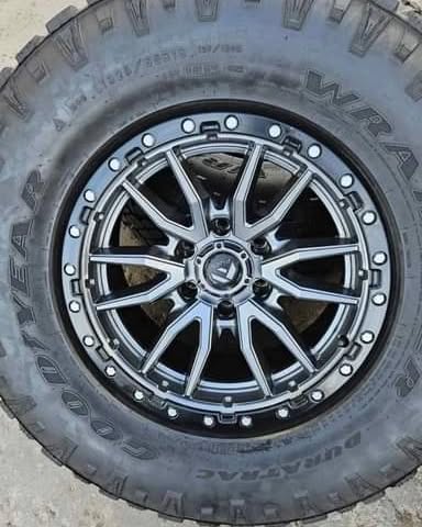 For sale a set of four fuel wheels with Goodyear duratracs around 90% percent tread life still left where on the truck 3 months nothing wrong with them wheels fit 6×5.5 6 lug